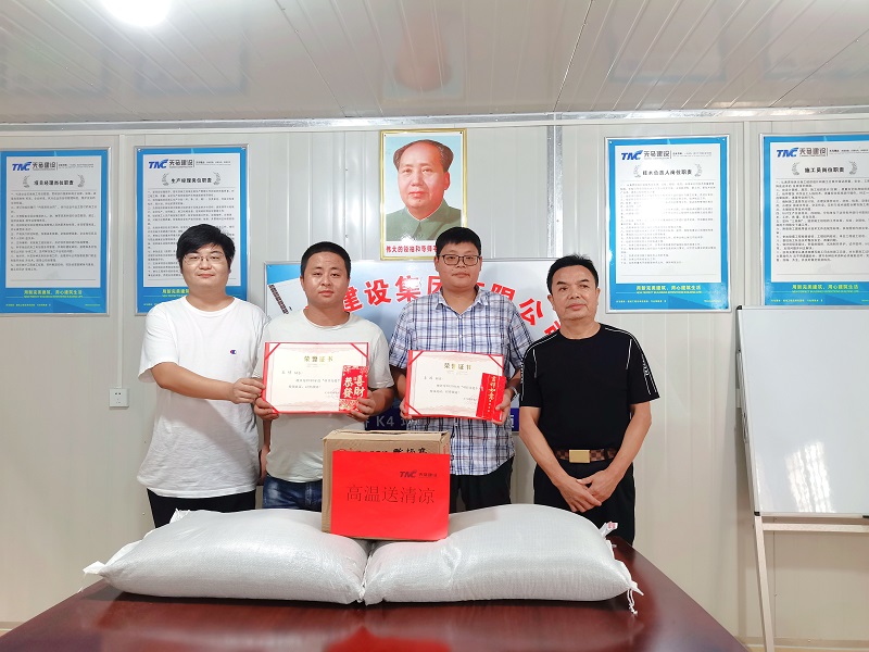 為切實做好防暑降溫工作,確保一線廣大職工身體健康和安全生產,近日,在集團公司工會主席余勝利、集團總工程師劉剛的帶領下,深入基層到公司各在建項目開展“夏日送清涼”慰問活動同時為公司發展無私奮斗的先進項目及個人進行表彰。