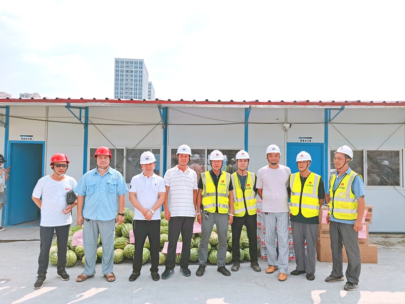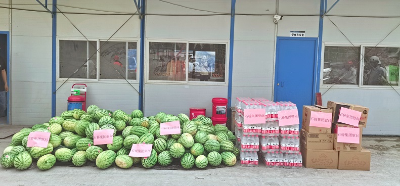 入夏以來,隨著氣溫的不斷升高,工人露天施工作業,體能消耗非常大,為了切實做好一線工人的防暑降溫工作,武漢石橋集團為項目部送來了3000斤西瓜、20箱礦泉水、綠豆、冰糖、蚊香、花露水等防暑降溫防蚊用品,為施工一線送清涼、送安全、送健康。把清涼送到了一線工作區域,把關懷送到了工人心坎。